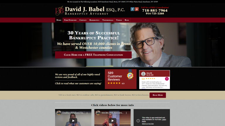 As one of the most accomplished and widely-known bankruptcy lawyers in New York’s Bronx and Westchester counties, Mr. Babel needed a website that showcased his 30 years of commitment to helping clients navigate the legal hurdles of everything from creditor harassment to foreclosure, and personal bankruptcy.